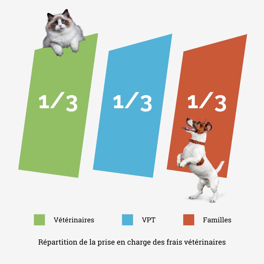 Si vous ne pouvez pas payer le tiers de la facture qui vous incombe, vous pouvez vous tourner vers une association de protection animale pour obtenir de l’aide dans la prise en charge de la facture grâce au devis établi. Ce n’est pas parce que vous êtes aidé par VPT que vous ne pouvez pas être aidé par une autre association de protection animale.
